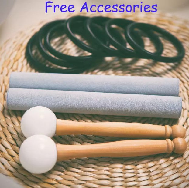 To play the bowls you need to merely put them on a solid surface, on top of the supplied rubber o-ring, strike the bowl gently a few times to 'get the vibration started' and then move the supplied mallet around the top edge of the bowl while holding firm against the outside edge. After a few circles the bowl will begin to 'sing'. Their singing reverberates after you have stopped playing them as if they are alive and singing all by themselves.