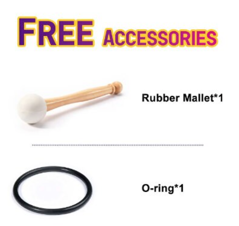 Free accessories:Rubber Mallet*1+Rubber O-ring*1.